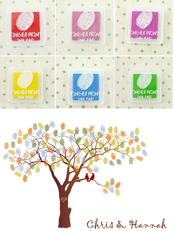 Lưu ý: Nếu được, các bạn có thể nhờ mấy em ngồi bàn ký tên hướng dẫn cho khách in vân tay, hoặc trước đó các bạn cũng có thể in sẵn trước một số vân tay để làm mẫu cho khách. Sau tiệc, khâu hoàn chỉnh bức tranh là việc của tân lang và tân nương: tiếp tục in vân tay vào những chỗ trống để có một bức tranh hoàn chỉnh, đầy nghệ thuật, ngẫu hứng và thật ý nghĩa.